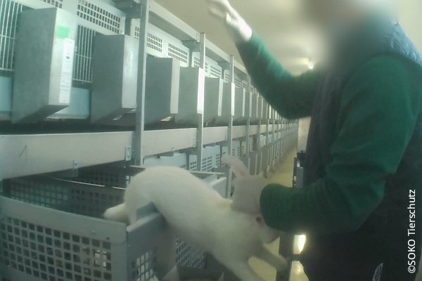Bilder der Kaninchen vom Asamhof Kissing zeigen grausamste Szenen: verletzte Gliedmaßen, abgebissene Ohren, Körper, die nur als „Versuchsmaterial“ betrachtet werden. Video zeigen, wie die Tiere gegen Wände geschleudert werden. SOKO Tierschutz hat undercover recherchiert und enthüllt: Auf dem idyllisch wirkenden Asamhof, der nach außen mit Erdbeeren, Mehl und sogar Tofu wirbt, werden Tausende Kaninchen für Tierversuche in winzigen Käfigen gehalten. Tierversuche sind eine unendliche Tortur für jede Tier – und diese Tiere wurden noch dazu durch die Mitarbeitenden gequält.